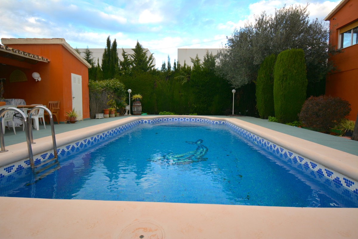 Esta propiedad se encuentra en una parcela llana de 980 m2, con un jardín muy bien cuidado y árboles frutales, dispone de una cocina de verano, piscina, un baño completo exterior, un amplio espacio de parking para varios coches y una perforación de agua que puede utilizarse para el jardín y piscina lo que significa un importante ahorro de dinero.