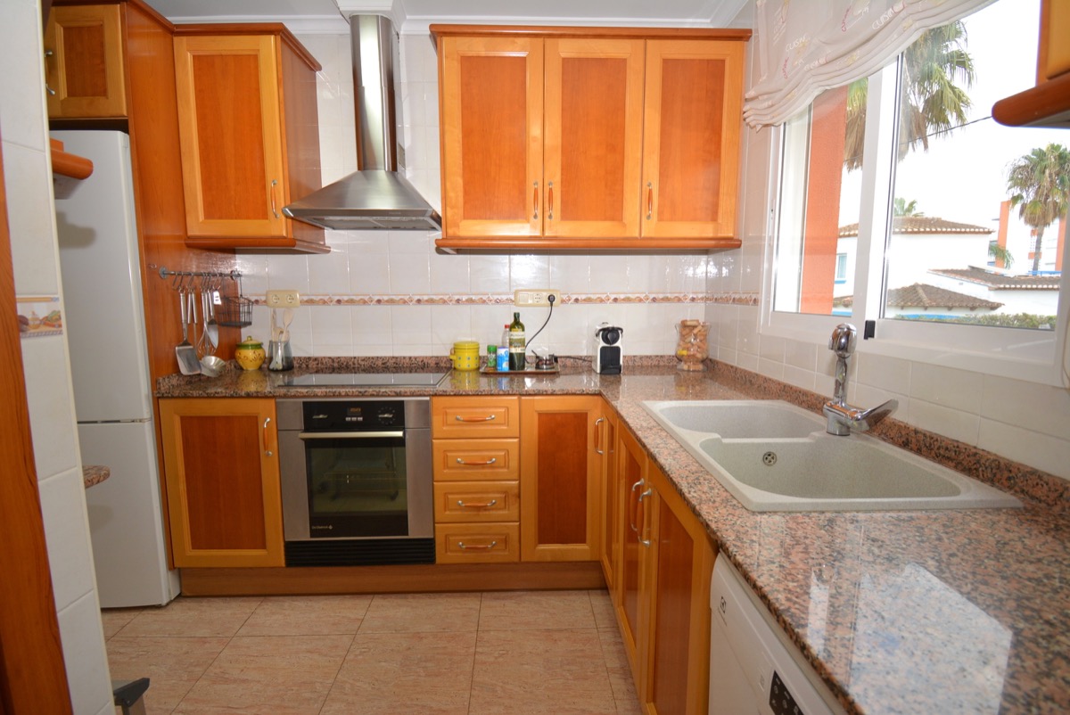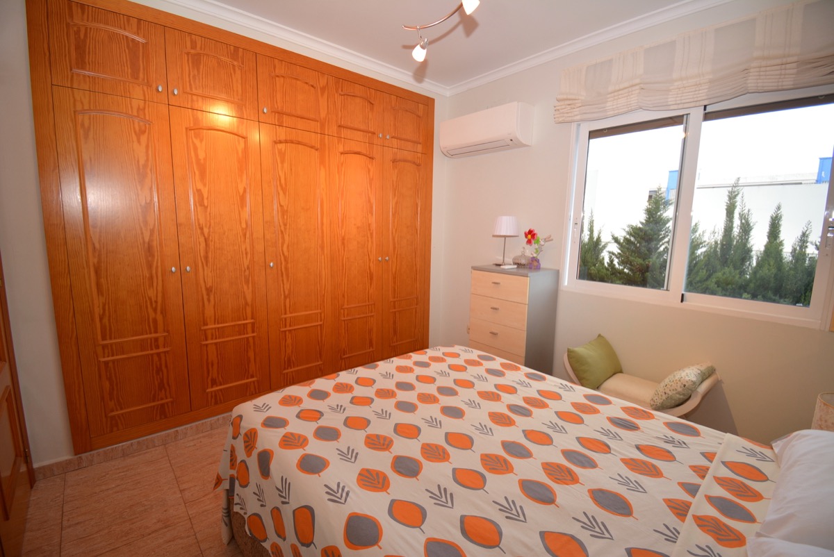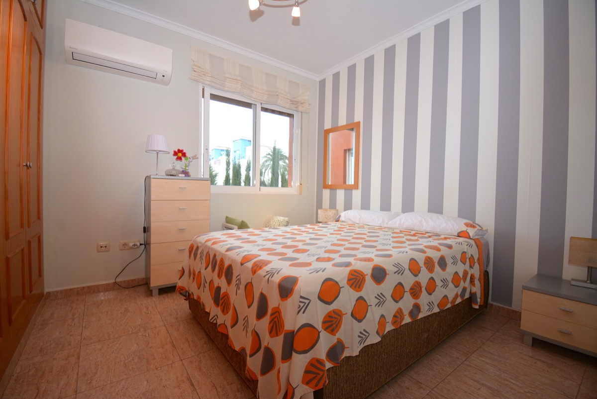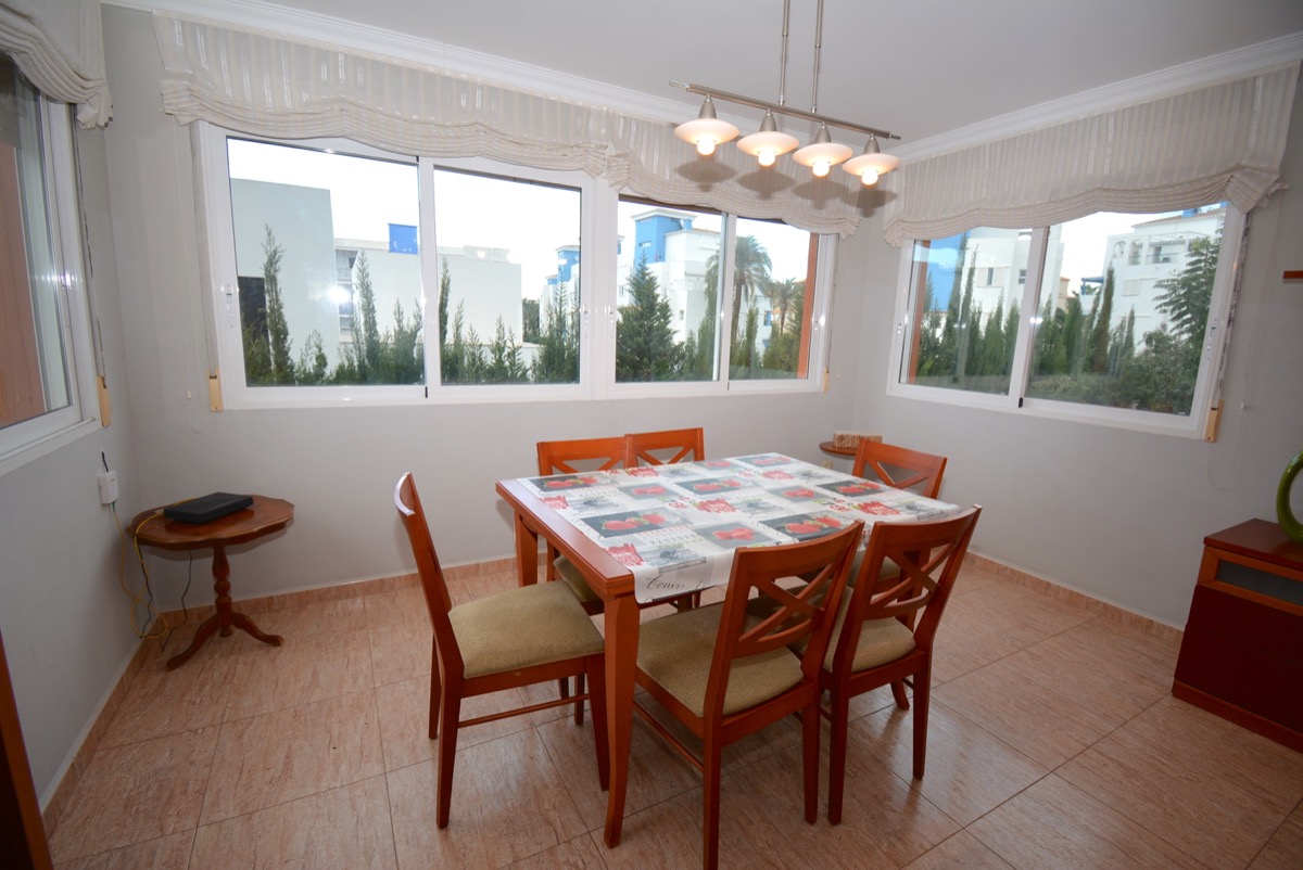La vivienda está orientada al Suroeste y consta de 170 m2, a la que accedemos a ella mediante una escalera exterior y allí nos encontraremos con una pequeña pero agradable terraza acristalada, un salón-comedor amplio y luminoso, cocina totalmente equipada, tres dormitorios dobles con armarios empotrados, un baño completo y un aseo.