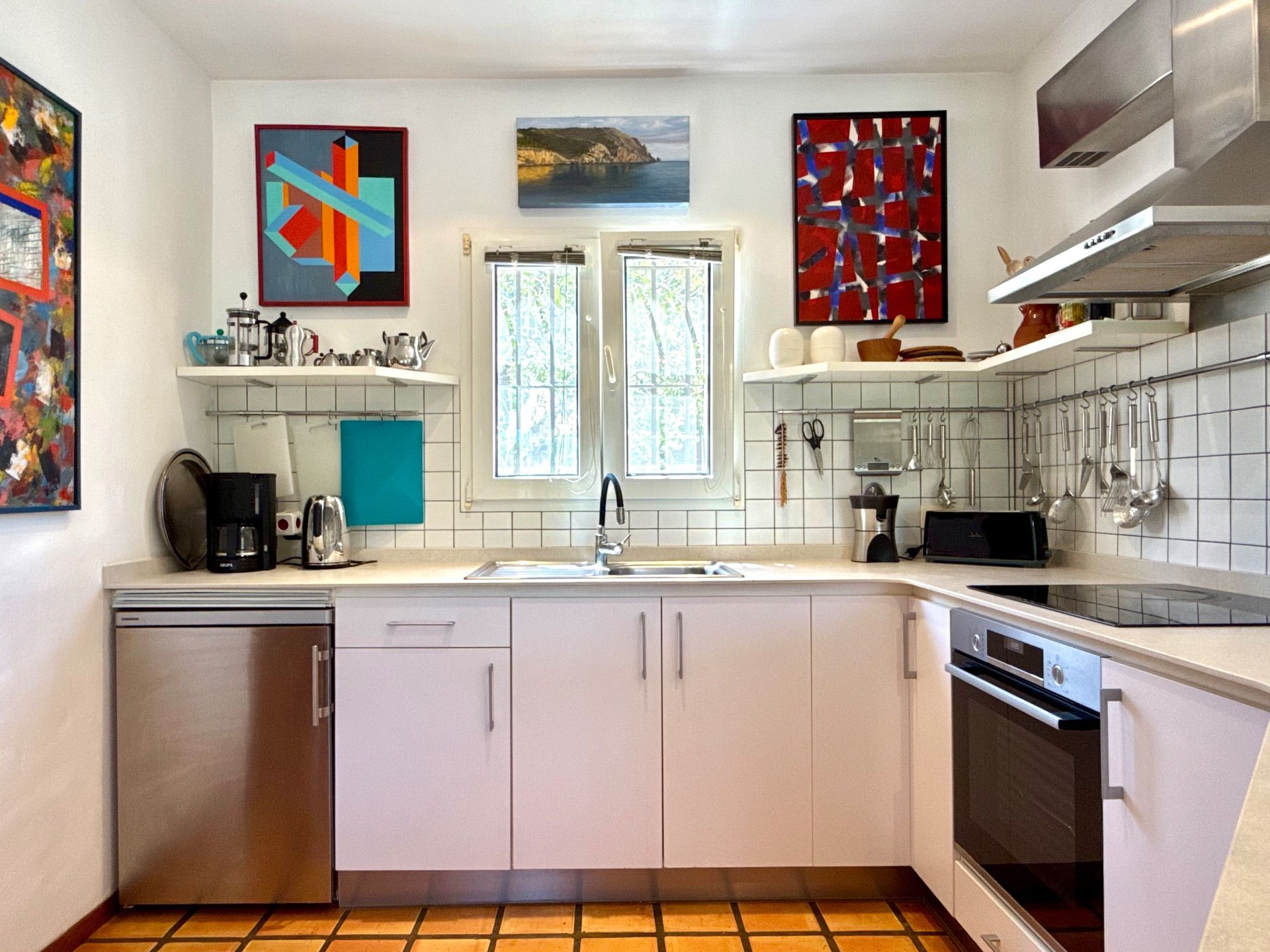 En el exterior, destaca una segunda construcción que combina un garaje con una pequeña vivienda de invitados totalmente equipada.