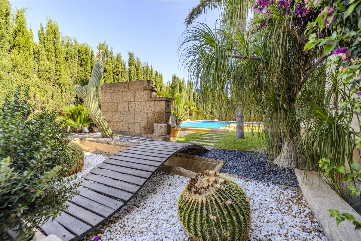 La propiedad fue construida en el año 2004 y cuenta con una parcela completamente llana de 985 m², ideal para disfrutar del clima mediterráneo en un amplio y bonito jardín de fácil mantenimiento y piscina con ducha exterior.