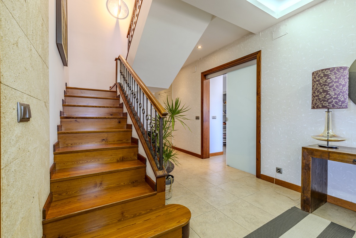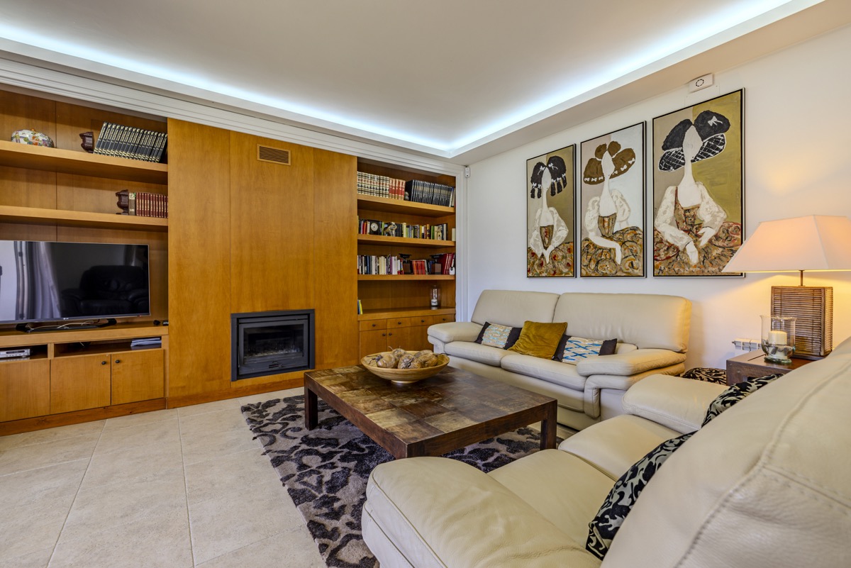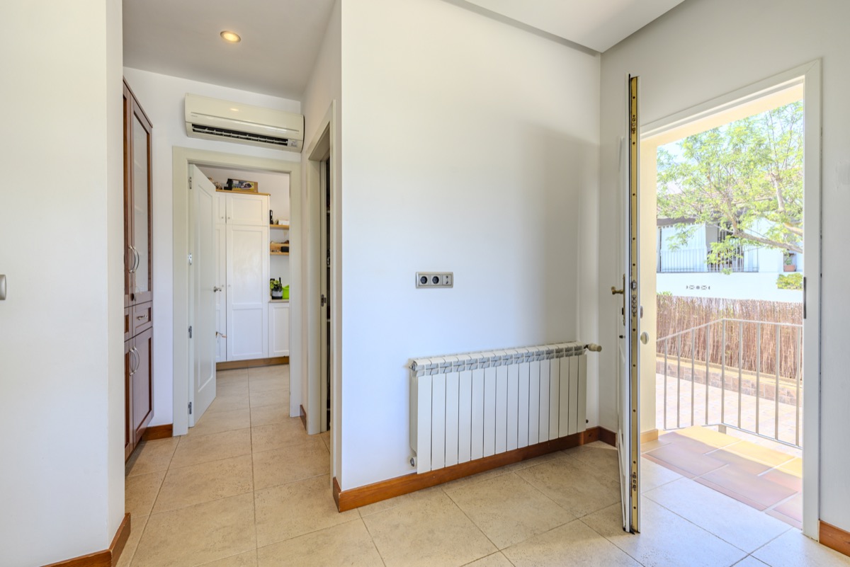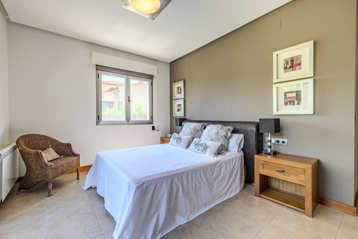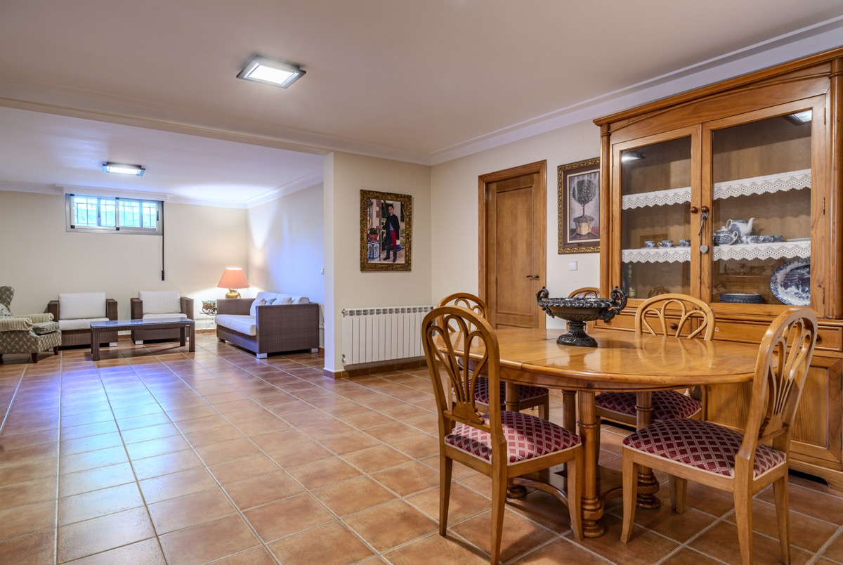 En la planta principal (185m2) encontramos un amplio hall de entrada, un luminoso salón-comedor con chimenea donde accedemos a una acogedora naya cubierta con acceso directo a la zona piscina, una cocina office con despensa, un espacioso lavadero, dos dormitorios y dos cuartos de baño. Uno de los dormitorios es el principal y cuenta con baño en suite y un vestidor.