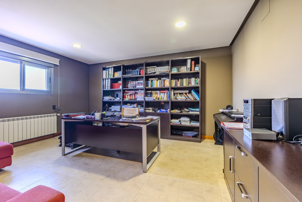 La planta alta (85m2) alberga dos dormitorios más (uno de ellos con salida a una soleada terraza), una gran oficina y un baño completo.